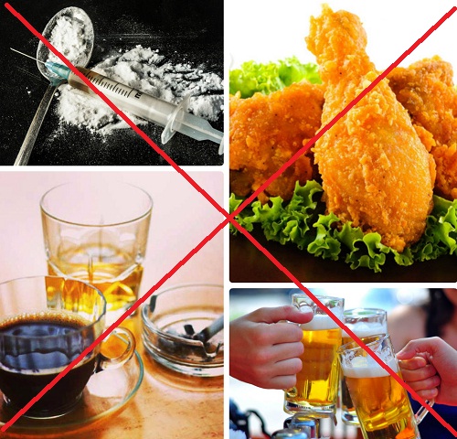 – Không hút thuốc lá, sử dụng rượu bia, cà phê và chất kích thích