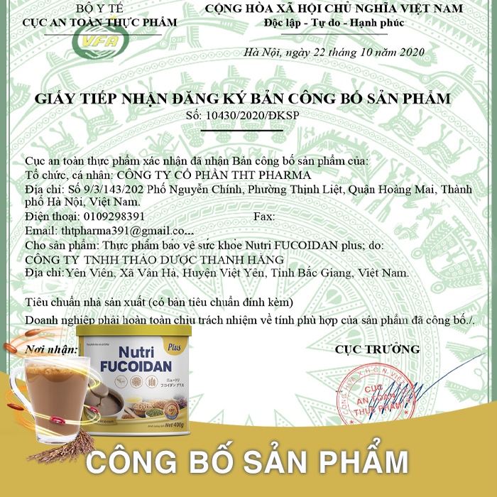 Công ty Thảo dược Thanh Hằng đã có hơn 11 năm kinh nghiệm trong lĩnh vực này, cùng với đó là đạt rất nhiều các thành tích đáng tự hào như ISO 2000,.. Chính vì vậy, Nutri Fucoidan rất tin tưởng và quyết định chọn Thanh Hằng làm người bạn đồng hành cho chất lượng.