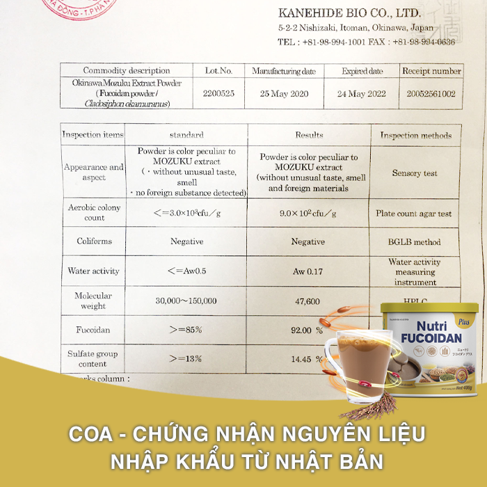 Nutri Fucoidan với thành phần Fucoidan chiết xuất từ tảo nâu nguyên sơ, nguyên liệu xuất khẩu trực tiếp từ Nhật Bản đảm bảo chất lượng đầu vào.