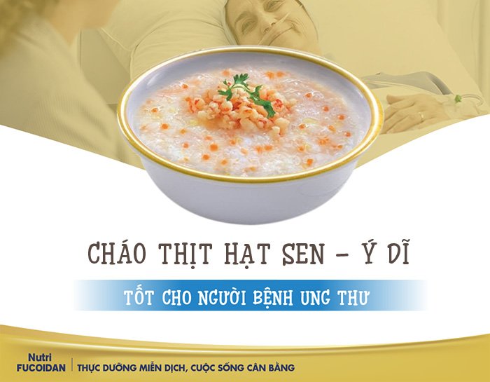 Cháo thịt hạt sen ý dĩ được chế biến từ những nguyên liệu thanh mát, chứa nhiều chất dinh dưỡng nên nó không chỉ là món ăn có thơm ngon mà còn là bài thuốc bổ cho sức khỏe, đặc biệt tốt cho bệnh nhân ung thư như ung thư phổi, ung thư dạ dày…
